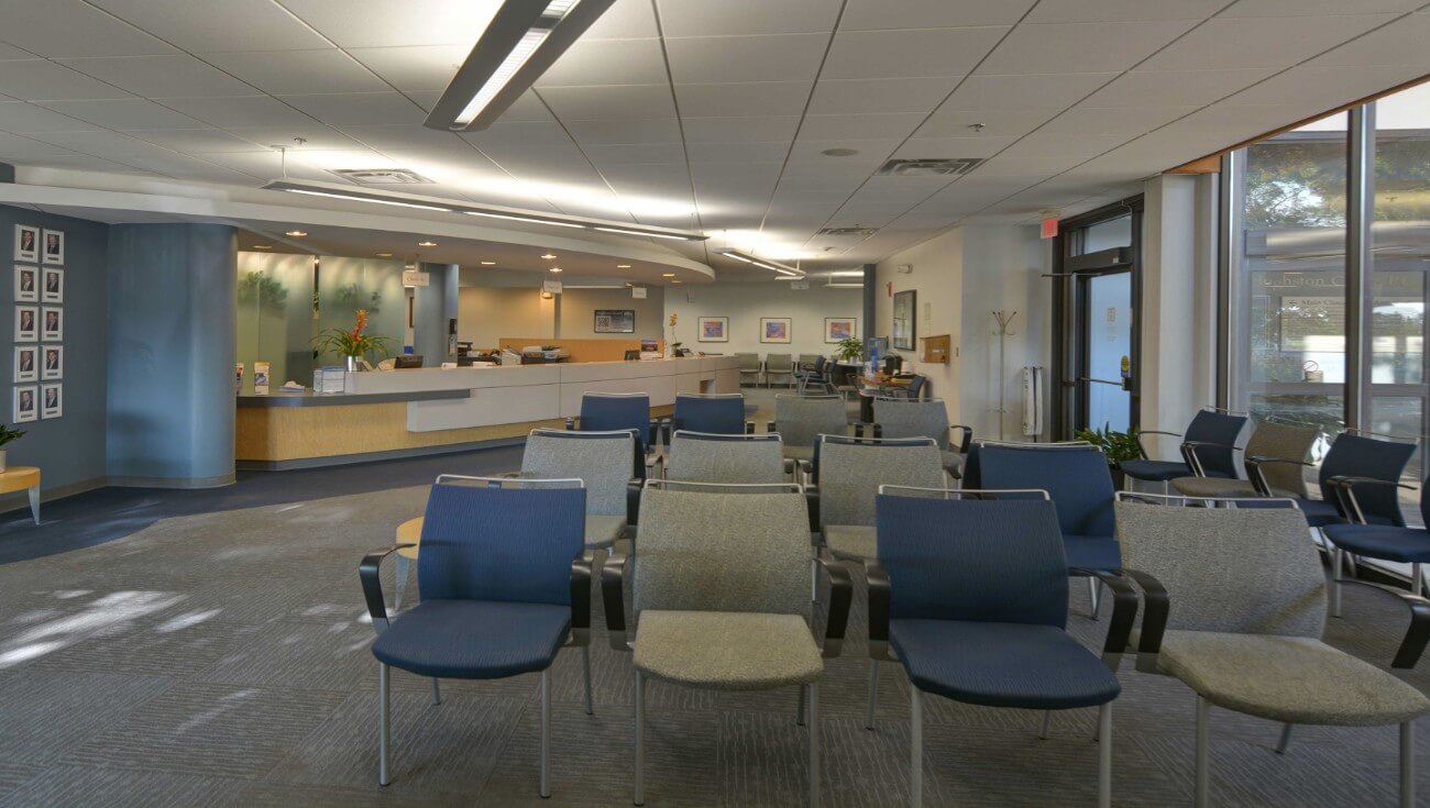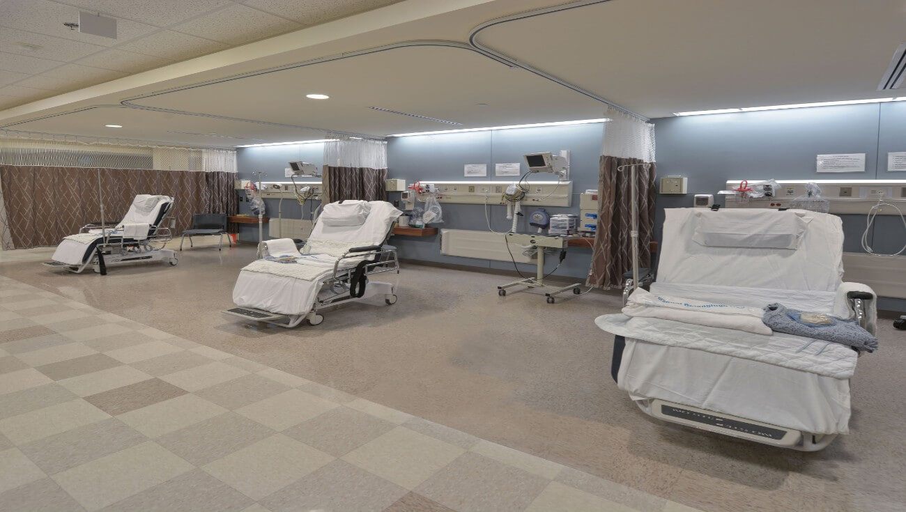 - Curvilinear millwork and lighting – Adding warmth and sophistication to patient spaces.