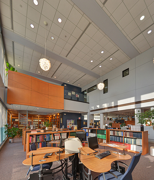 A key focus of the renovation was the complete redesign of the Hughston Foundation library. The space now features distance learning technology and a secure special collection balcony. These updates allow greater access to research materials.