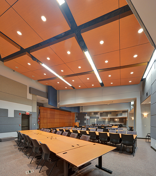 The renovation balanced modern updates with the existing architectural framework. Warm woods, strategic lighting, and custom millwork transformed the once-dated facility. Now, the space competes with global conference centers. By integrating new finishes while respecting original elements, 2WR successfully revitalized the Hughston Foundation.