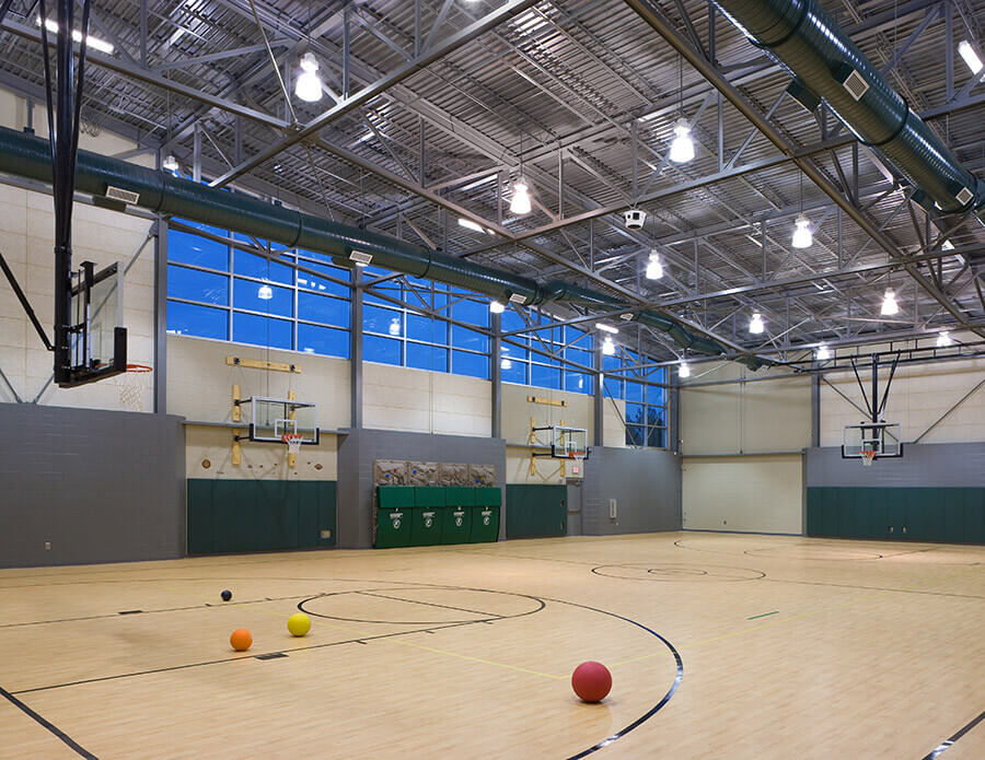 - Expansive Classroom Windows – Each classroom has two oversized windows, totaling over 90 sq. ft., oriented north or south. This placement optimizes daylight and reduces glare.