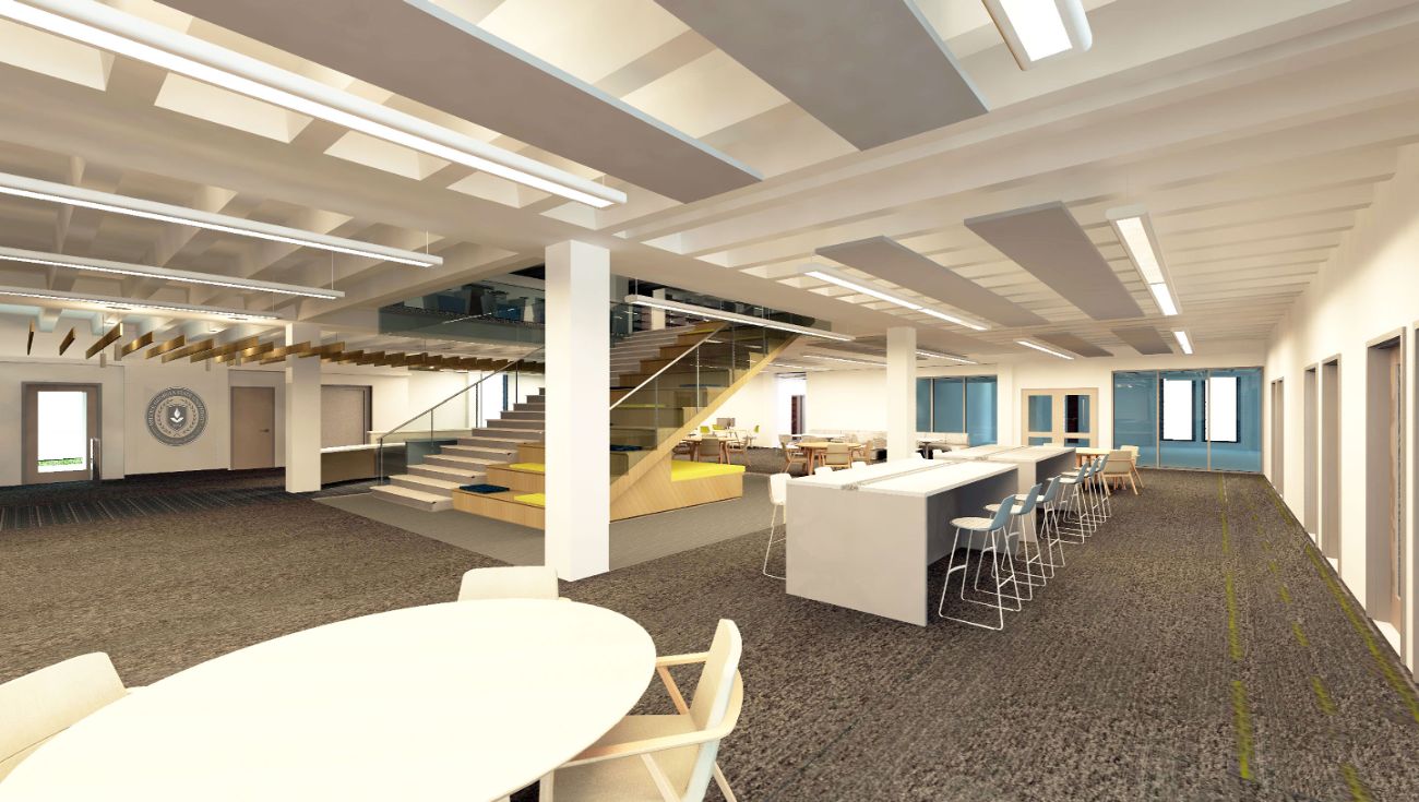 - Flexible Study Environments – High-tech study rooms, open stairways, and collaborative lounges now support a variety of learning styles. These spaces encourage both independent work and group collaboration.