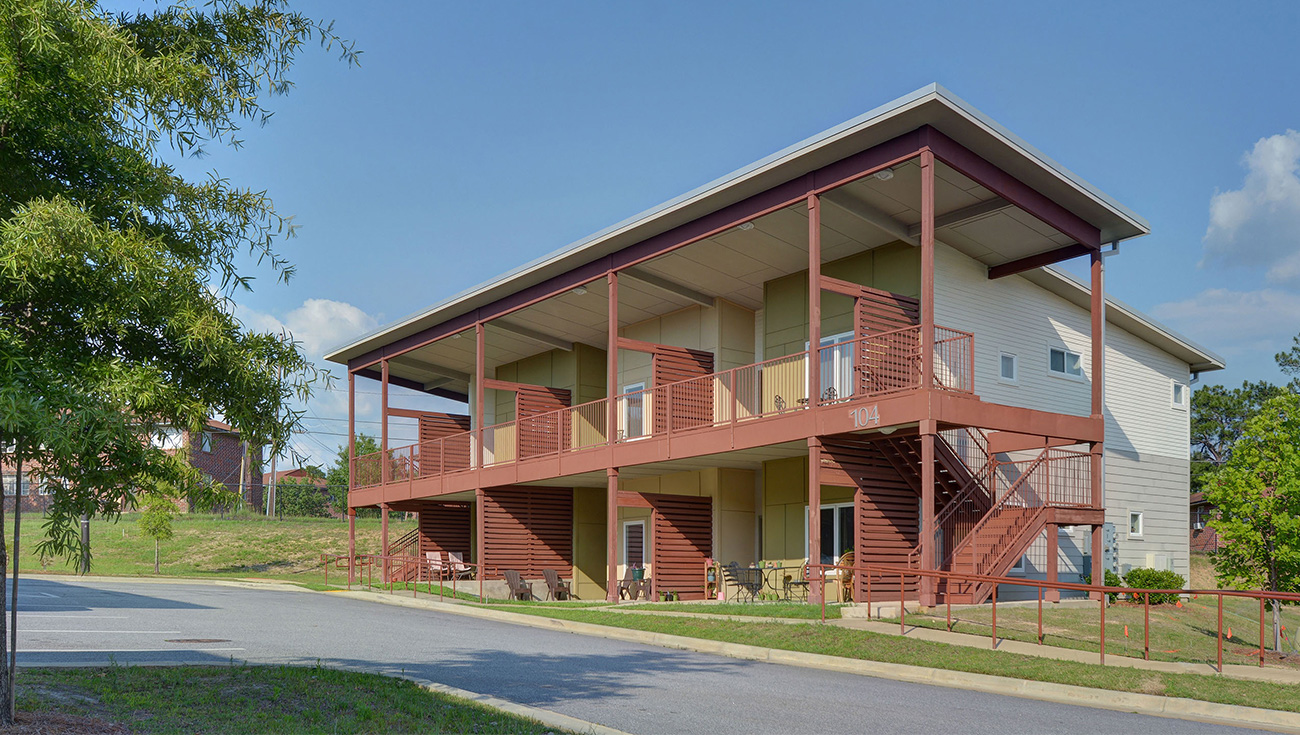 2WR Architects collaborated on this project to create a sustainable and affordable residential community. Located on a sloping triangular site, the development stands out as one of the most successful HUD-funded housing projects in the region. With all units fully occupied, the project demonstrates the effectiveness of strategic design and thoughtful planning. The site includes a clubhouse and thirty 750 sq. ft. one-bedroom units, providing residents with comfortable and accessible living spaces that balance functionality and aesthetics.